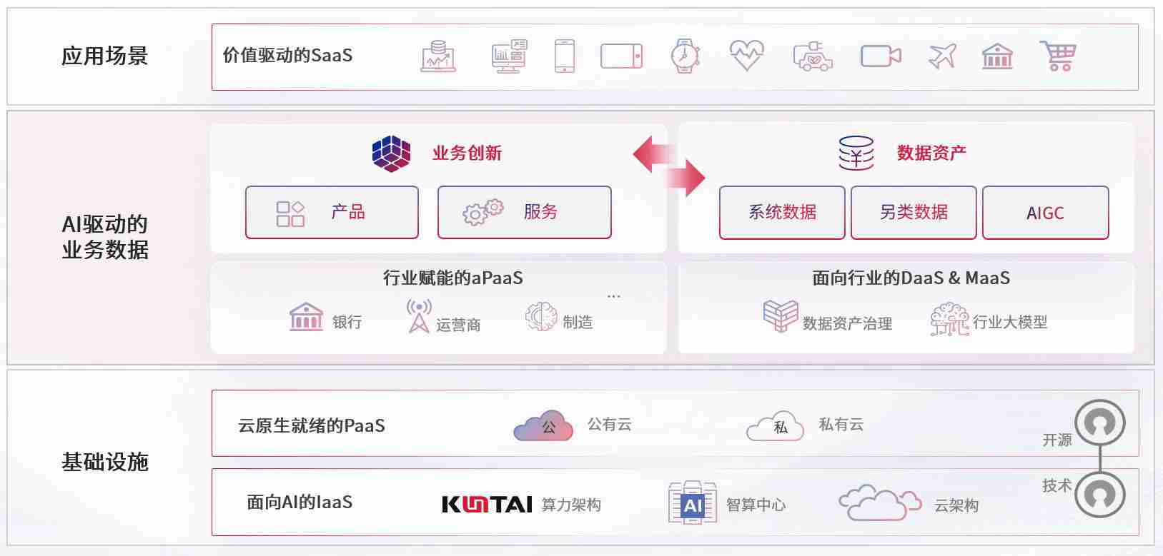 数字时代,,,,围绕企业数字化转型的关键要素,,,尊龙集团数码开创性的提出数云融合战略和技术体系框架,,,着力在云原生、、、、数字原生、、、AI原生和信创产业上架构产品和服务能力,,,,为处在不同数字化转型阶段的快消零售、、、、汽车、、、、金融、、、医疗、、、政企、、教育、、、运营商等行业客户提供泛在的敏捷IT能力和融合的数据驱动能力,,,,构建跨界融合创新的数字业务场景和新业务模式,,助力企业级客户建立面向未来的核心能力和竞争优势,,,,全面推动社会的数字化、、、智能化转型升级。。。。